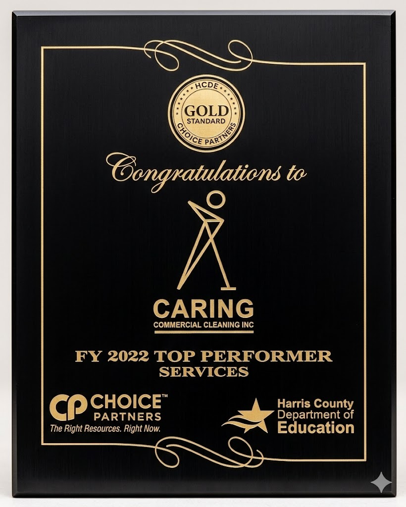 Awarded by Choice Partners and the Harris County Department of Education, this Gold Standard designation recognizes Caring Commercial Cleaning as a top-performing vendor delivering exceptional janitorial services to Texas school districts and educational institutions.